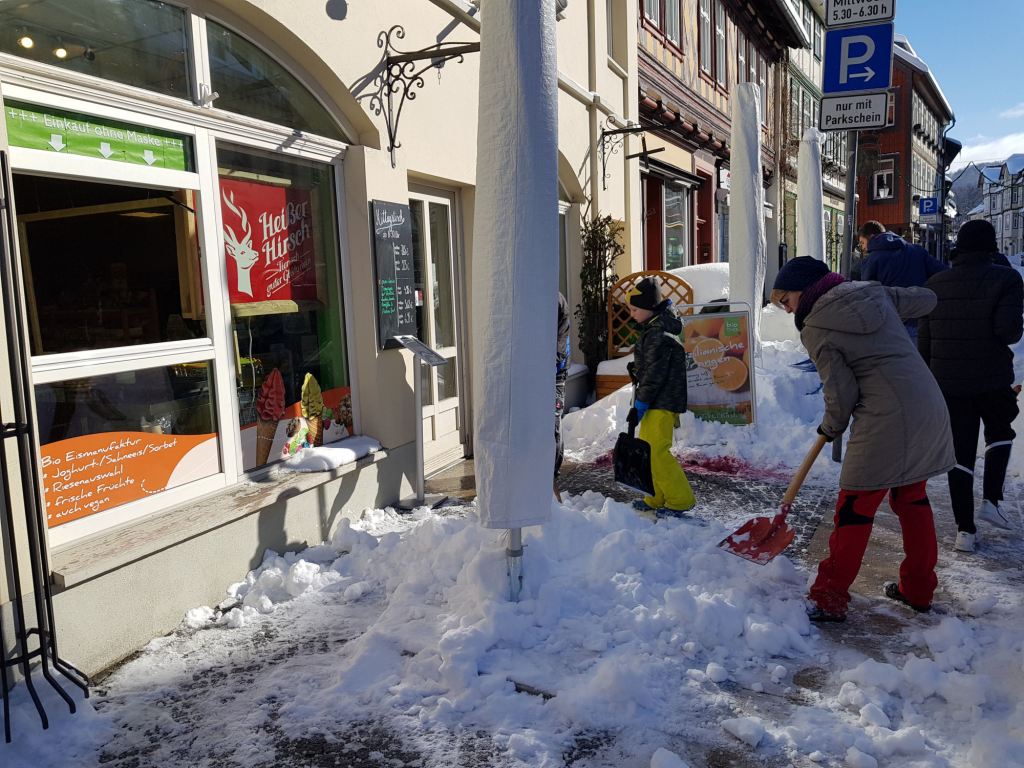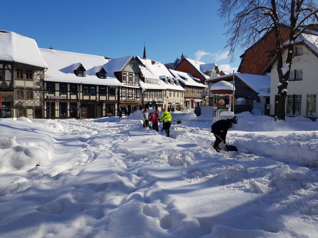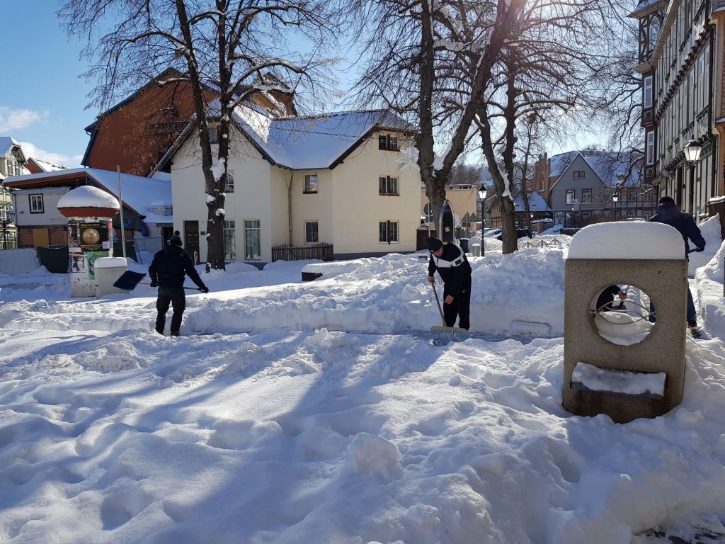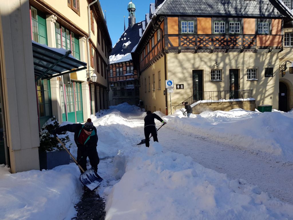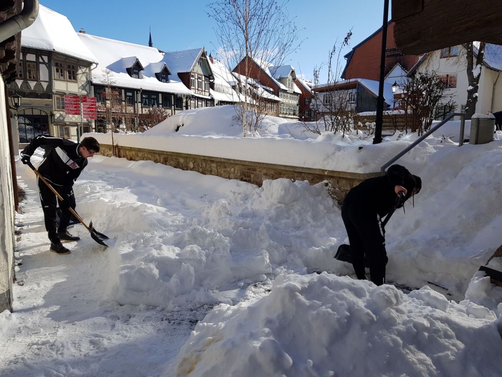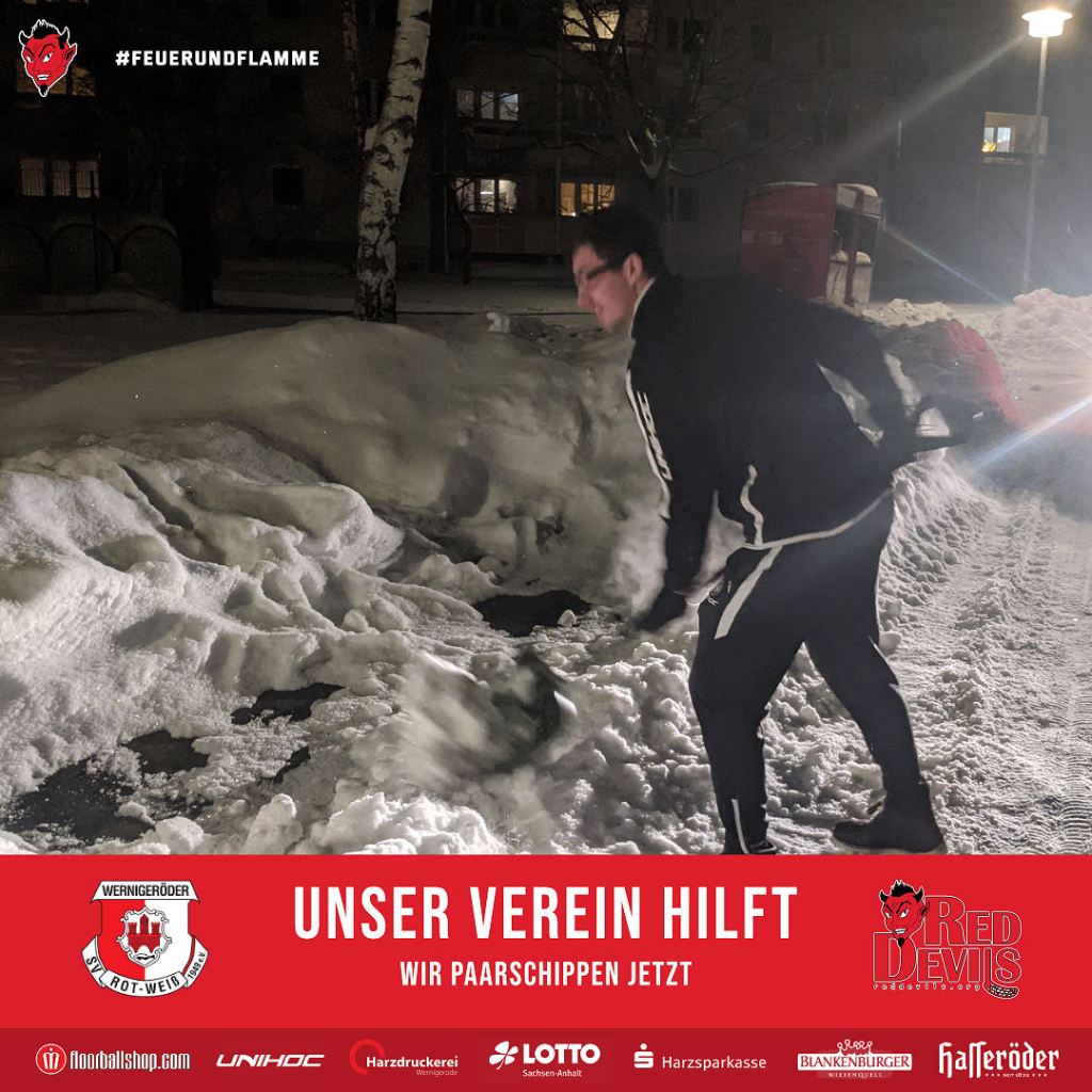 Am Samstag, den 13. Februar 2021 mobilisierte der Wernigeröder Sportverein „Rot-Weiß“ e.V. nach Rücksprache mit der Stadt Wernigerode kurzfristig eine Hilfsaktion, um die Innenstadt von den Schneemassen zu befreien und die Gehwege wieder passierbar zu machen. Dem spontanen Aufruf folgten knapp 30 Vereinsmitglieder, Eltern und weitere Sportfreunde.