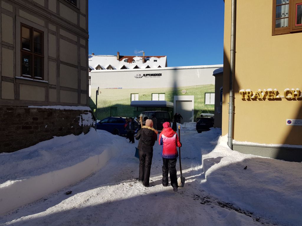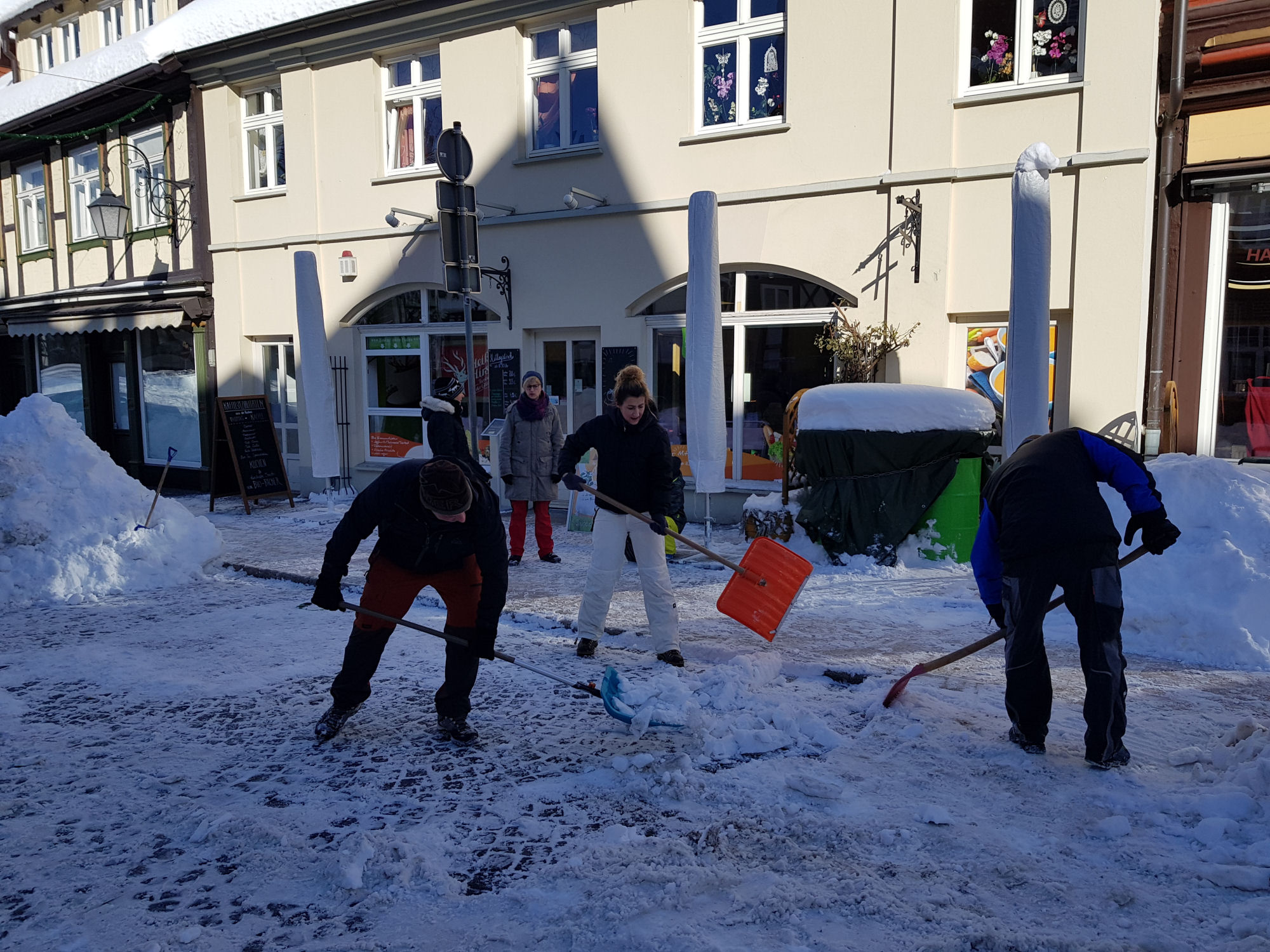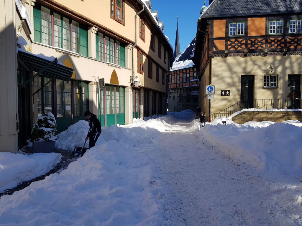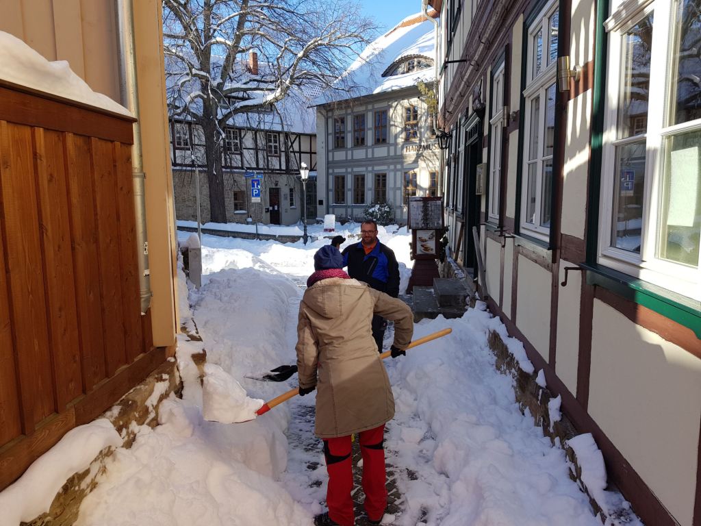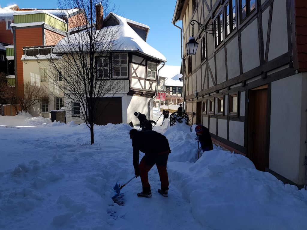 Am Samstag, den 13. Februar 2021 mobilisierte der Wernigeröder Sportverein „Rot-Weiß“ e.V. nach Rücksprache mit der Stadt Wernigerode kurzfristig eine Hilfsaktion, um die Innenstadt von den Schneemassen zu befreien und die Gehwege wieder passierbar zu machen. Dem spontanen Aufruf folgten knapp 30 Vereinsmitglieder, Eltern und weitere Sportfreunde.